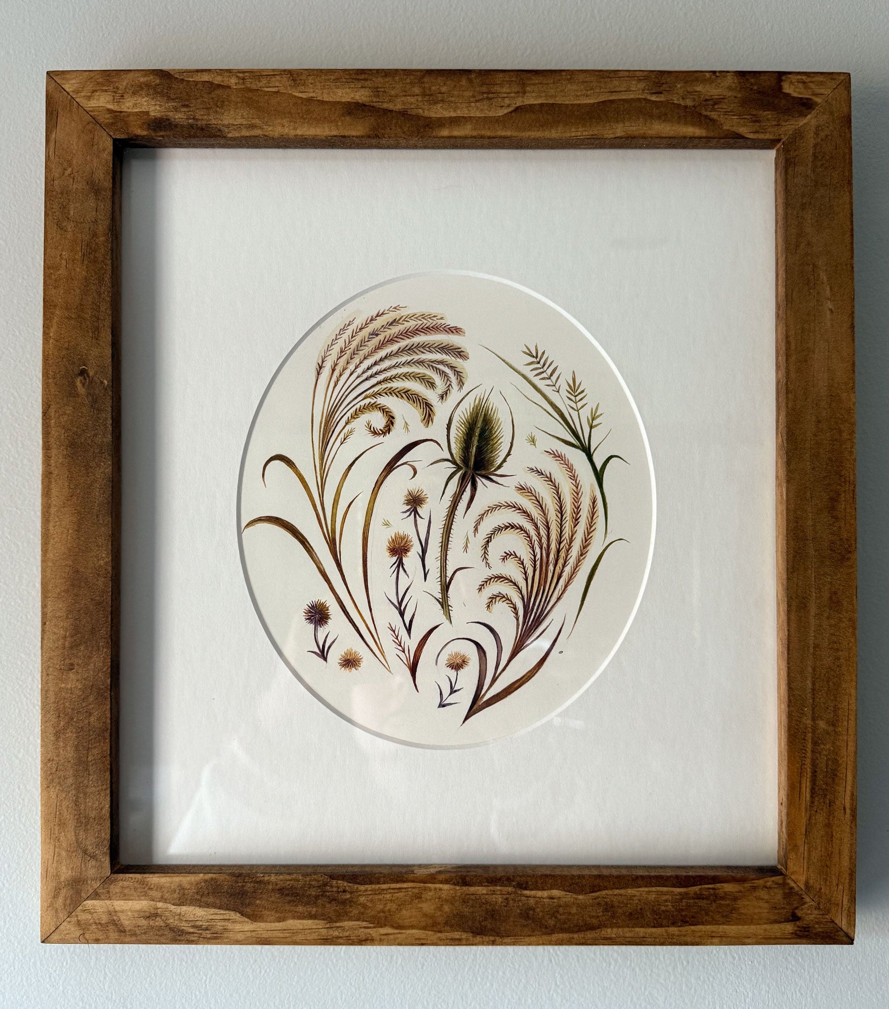 A 7" x 6" botanical watercolor rooted in quiet and earth-worn colors of the winter. Framed at 14.5" x 13.25", this piece brings a gentle sense of calm to any room, especially spaces that favor grounded, natural tones.