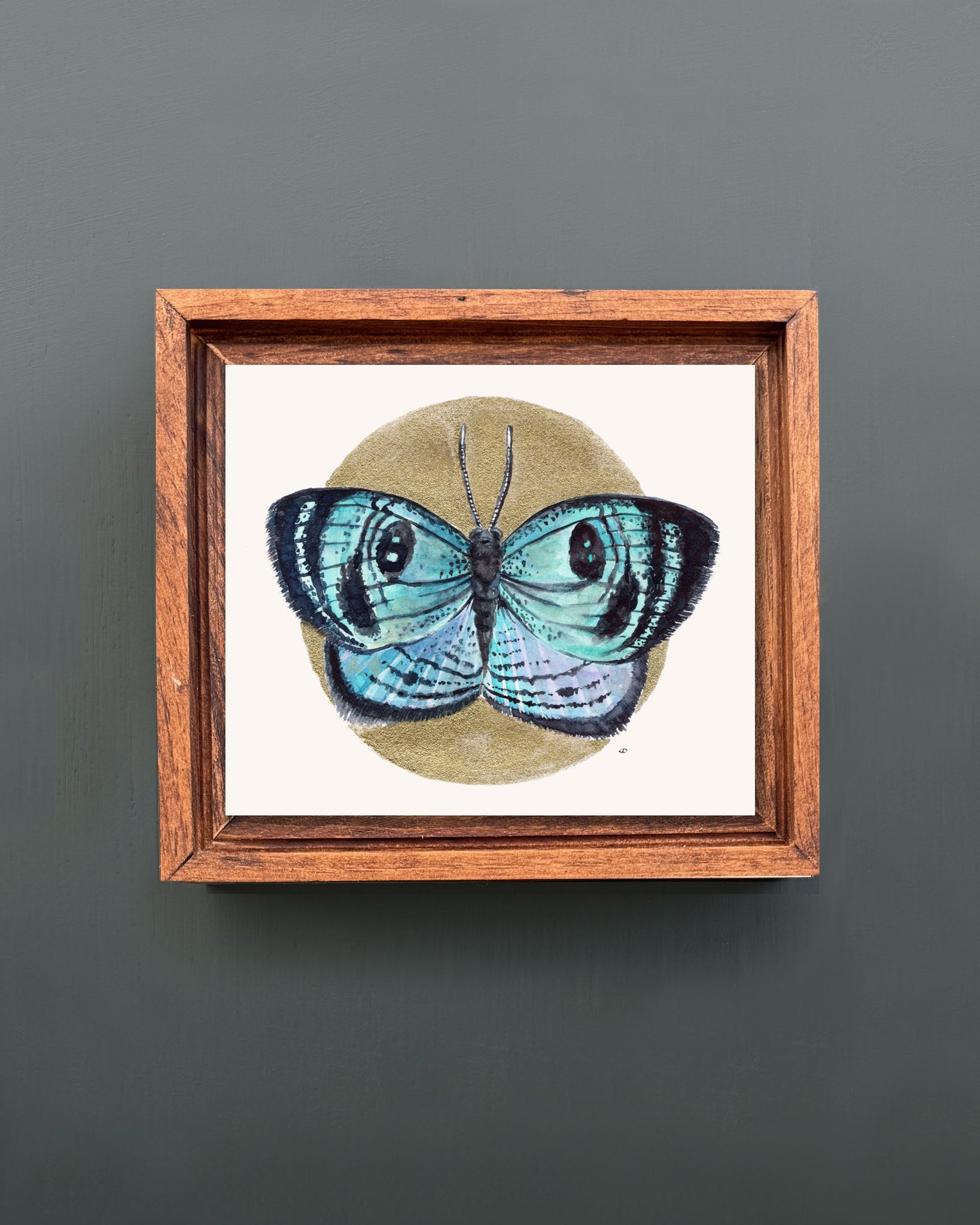 My daughter and I discovered this turquoise-and-black butterfly while flipping through a Butterflies of the World book we borrowed from the library. Its luminous wings immediately caught our attention—so vibrant they seemed almost unreal. I chose to paint it as a reminder of how much wonder can be found in the unfamiliar, and how curiosity often leads us somewhere beautiful.